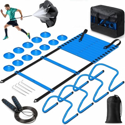 Agility Ladder Speed Training Equipment Set-20ft Agility Ladder, Soccer Cones, Hurdles, Jump Rope, Running Parachute for Training Equipment