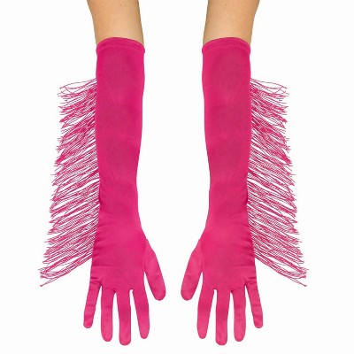 Adults Long Polyester Gloves with Pink Fringe Costume Accessory