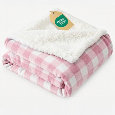 Blanket Throw - Oversized Plush Woven Polyester Fleece Plaid Throw - Breathable by Hastings Home (Modern Blush)