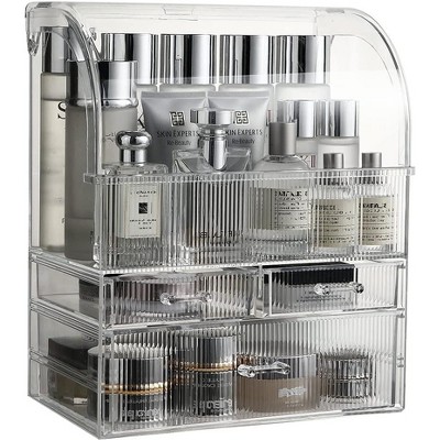 Makeup Organizer Countertop Vanity with Transparent Lid Drawers Waterproof Dustproof Cosmetic Skincare Storage
