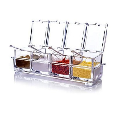 Aoibox Clear Seasoning Rack Spice Pots - 4 Piece Acrylic Seasoning Box with Cover and Spoon - Storage Container for Condiments