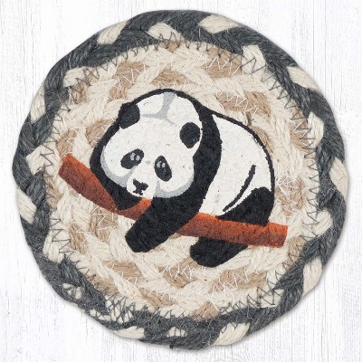 Earth Rugs Giant Panda Round Coaster – Braided Jute, Wildlife Theme, 5"x5" Eco Accent