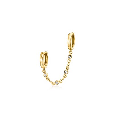 Pure Collection by Ross-Simons Diamond-Accented Double-Piercing Single Earring in 14kt Yellow Gold