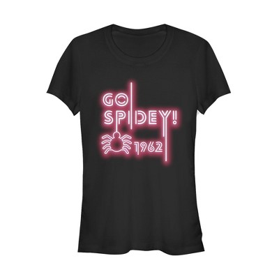 Juniors Womens Marvel Spider-Man Neon Light Logo T-Shirt