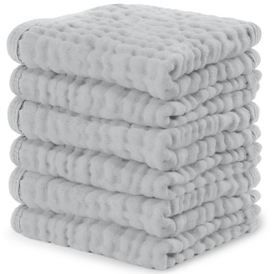 Baby Washcloths Muslin Cotton, Large 10”x10” by Comfy Cubs - Heather Blue, Pack of 6