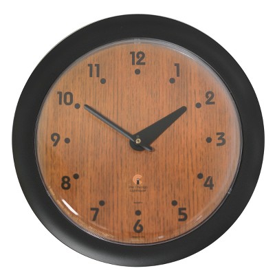 14" x 1.8" Oak Veneer Traditional Decorative Wall Clock Black Frame - By Chicago Lighthouse: Modern Design, Indoor Use, Analog Display