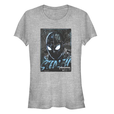 Juniors Womens Marvel Spider-Man: Far From Home Tech Emblem T-Shirt