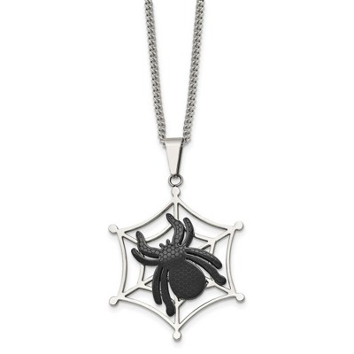 Black Bow Jewelry Two-Tone Stainless Steel Spider and Web Necklace 22 Inch