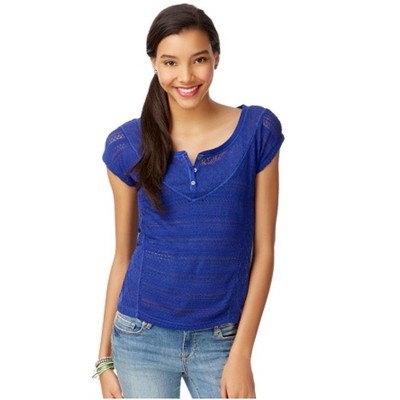 Aeropostale Womens Sheer Mixed Knit Henley Sweater
