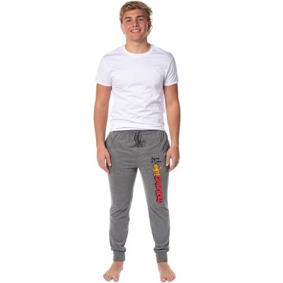 Garfield Men's Jogger Pajama Pants If I Care Adult Cartoon Cat Grid Loungewear Sleep Pants Grey