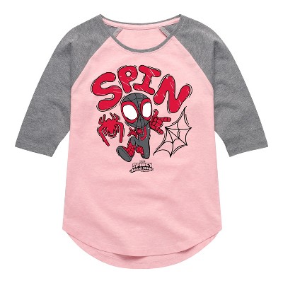 Girls' - Marvel - Spider-Man And His Amazing Friends Doodle Spin Shirt Tail Raglan Graphic T-shirt