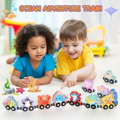 Wooden Magnetic Animal Train for Toddlers – Learning Toy with 11 Animal Cars