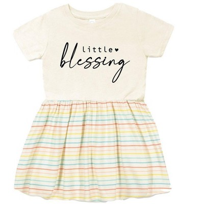 The Juniper Shop Little Blessing Heart Toddler Dress - 4T - Natural Stripe