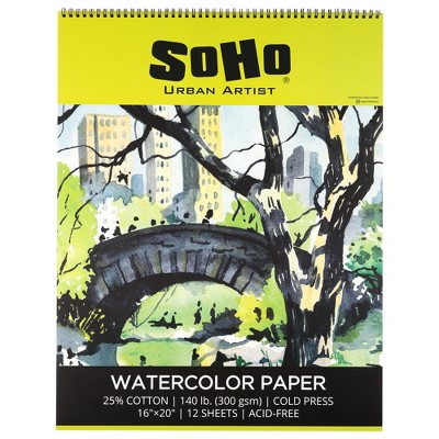 SoHo Urban Artist Watercolor Spiral Pad - 140lb Cold Press Acid-Free, ECF, 12 Pages