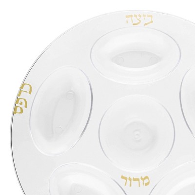 Smarty Had A Party 12" Clear w/ Gold Section Tray Plastic Seder Plates - 24 pcs