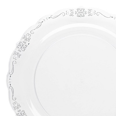 Smarty Had A Party 10" Clear w/ Silver Vintage Rim Plastic Dinner Plates - 120 pcs