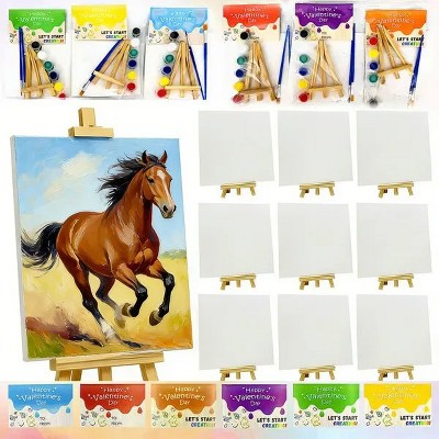 Valentine's Day Art Kits for Kids, 24 Pack w/Greeting Cards, Mini Canvas, Wooden Easel, Watercolor Paints & Brushes for School Classroom Gift Exchange