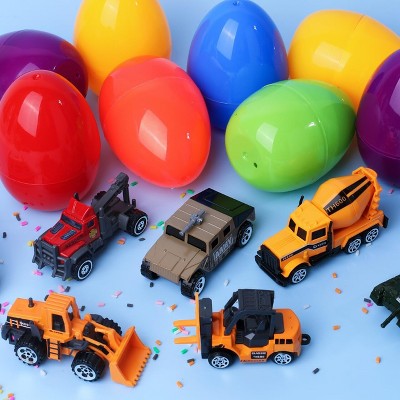 Joyfy 12 Pcs Prefilled Easter Eggs with Pull Back Cars, Plastic Eggs with Cute Vehicle Toys for Easter Basket Stuffers Kids Party Favors