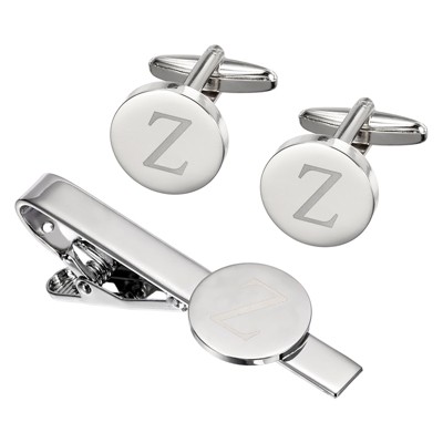Unique Bargains Copper Engraved Initial Men Cufflinks and Tie Clip Bar Set Silver