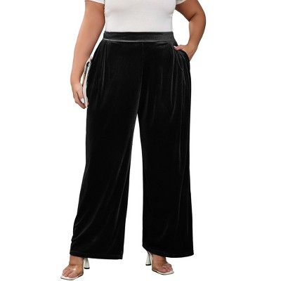 Plus Size Women Pants Elastic Waist Velvet Wide Leg Long Trousers