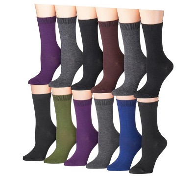 Tipi Toe Women's 12-Pairs Lightweight Solid Dark Colored Crew Socks
