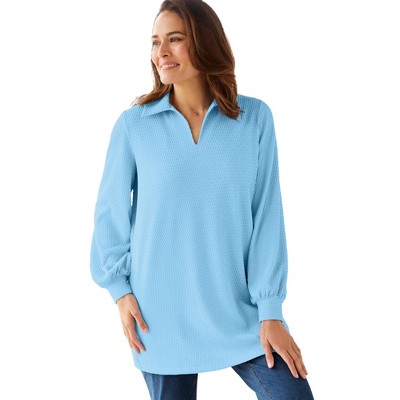 Woman Within Blouson Sleeve Texture Tunic