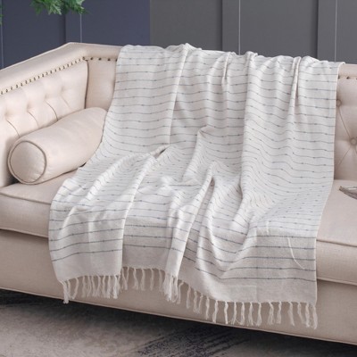 SEVOBAL Throw Blankets 2PCS Decorative Throw Blanket Cotton Throw Blanket with Tassels Soft for Couch Bed or Chair, White, 60"*50"*0.3"