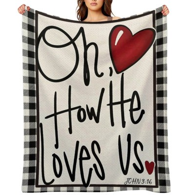 Valentine's Day "Oh How He Loves Us" Throw Blanket - Ultra Soft, Anti-Pilling for Couch & Gifts 50x60 inches