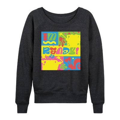 Women's - SpongeBob SquarePants - I'm Ready Lightweight French Terry Wide Neck Long Sleeve Graphic Shirt