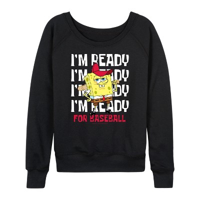 Women's - SpongeBob SquarePants - Ready For Baseball Lightweight French Terry Wide Neck Long Sleeve Graphic Shirt