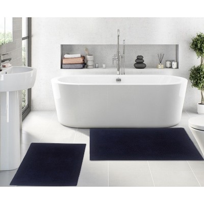 Luxury Reversible Bathroom Rugs Set, Washable Rug, Soft Cotton Extra Soft and Absorbent bath Rug, Non-Slip Bath Mat Set, 2 Pcs Set(S+L), Navy