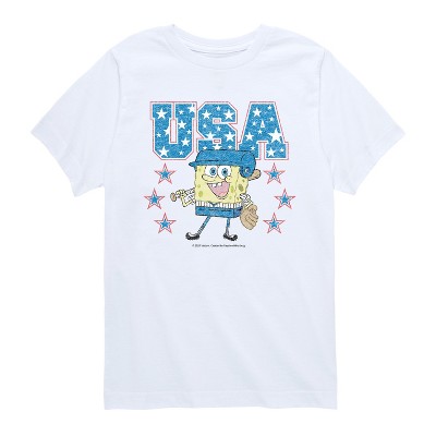 Boys' - SpongeBob SquarePants - Usa Baseball Short Sleeve Graphic T-Shirt