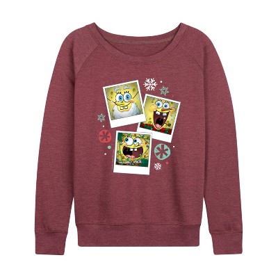 Women's - SpongeBob SquarePants - Christmas Photo Collage Lightweight French Terry Wide Neck Long Sleeve Graphic Shirt