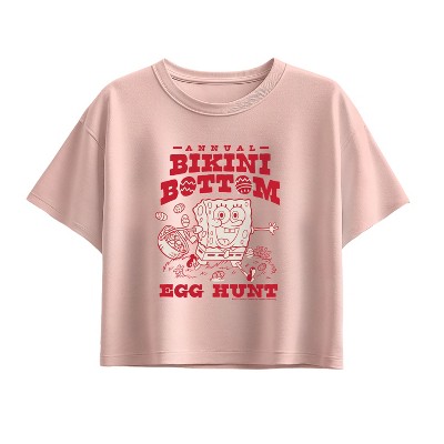 Girls' - SpongeBob SquarePants - Bikini Bottom Egg Hunt Short Sleeve Boxy Graphic T-Shirt