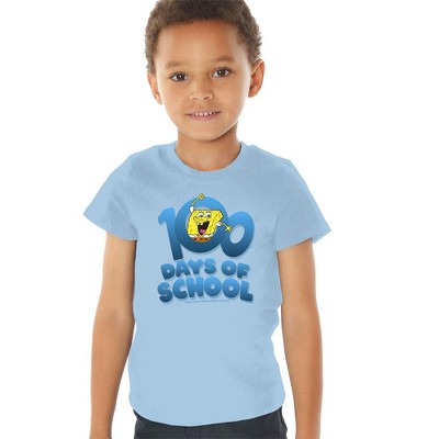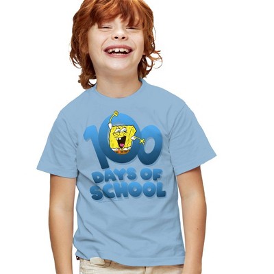 SpongeBob 100 Days of School Kids T Shirt for Youth Boys and Girls Light Blue