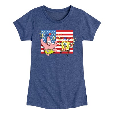 Girls' - SpongeBob SquarePants - Patrick Sparkers Flag Fitted Short Sleeve Graphic T-Shirt