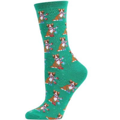 Memoi Women's Soft Ribbon Collar Dog Cashmere Blend Crew Sock