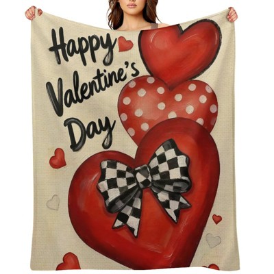Valentine's Day Red Heart Plaid Bow Happy Throw Blanket - Ultra Soft, Anti-Pilling for Bed & Gifts 50x60 inches