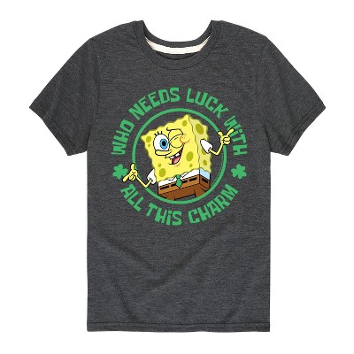Boys' - SpongeBob Squarepants - Who Needs Luck With This Charm Short Sleeve Graphic T-Shirt