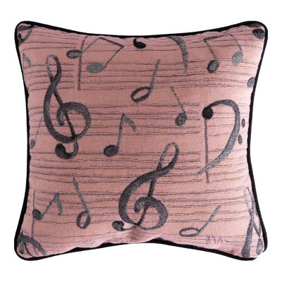 Manual Woodworkers and Weavers 17" Woven Pillow – Music Note with Floral Design, Soft Tapestry Style Accent Cushion