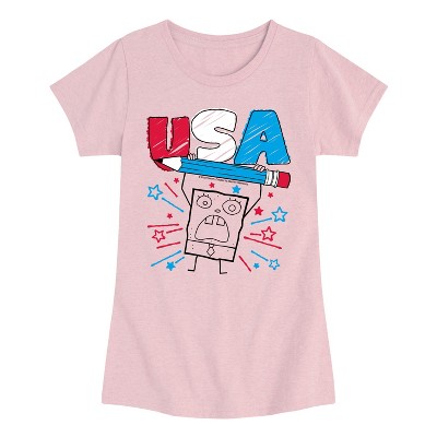 Girls' - SpongeBob SquarePants - Doodle USA Fitted Short Sleeve Graphic T-Shirt