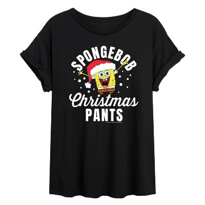 Women's - SpongeBob SquarePants - Spongebob Christmas Pants Oversized Graphic T-Shirt