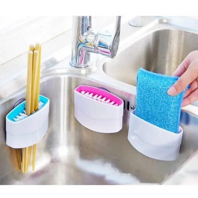 Suction Cup Sink Brush with Hard Bristles, Multi-Purpose Kitchen Scrubber for Dishes, Utensils, Pots and Pans