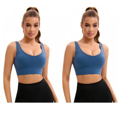 INSPIRE CHIC 2 Pcs Women's U Back V-Neck Padded Workout Crop Top with Built-in Bra Sports Bras