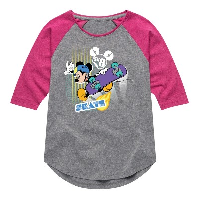 Girls' - Disney - Mickey Playing Sports Shirt Tail Raglan Graphic T-shirt
