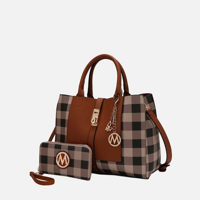 MKF Collection Yuliana Checkered Vegan Leather Satchel Bag with Wallet for Women by Mia K