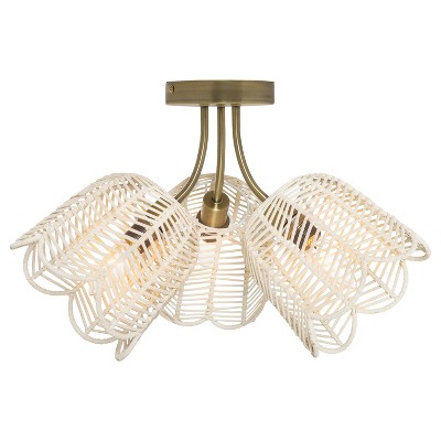 Dewdrop Rattan Semi Flush Mount Ceiling Light, Boho Farmhouse Woven Pendant Fixture for Bedroom Kitchen