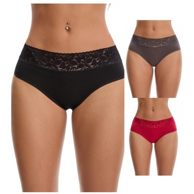 INSPIRE CHIC Women's Lace Mid Waisted Soft Breathable Briefs Underwear 3 Packs