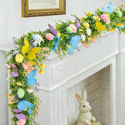 Angel Sar 6Ft Easter Garland, Spring Vine with Colorful Eggs, Flowers, Butterflies, for Home Mantel, Fireplace, Rustic Decor