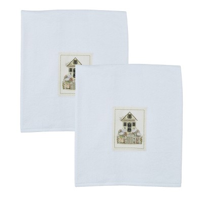 2pc Floral Jacquard Hand Towel Set Moss Green - SKL Home: 100% Cotton, Midweight Terry Fabric, Machine Washable